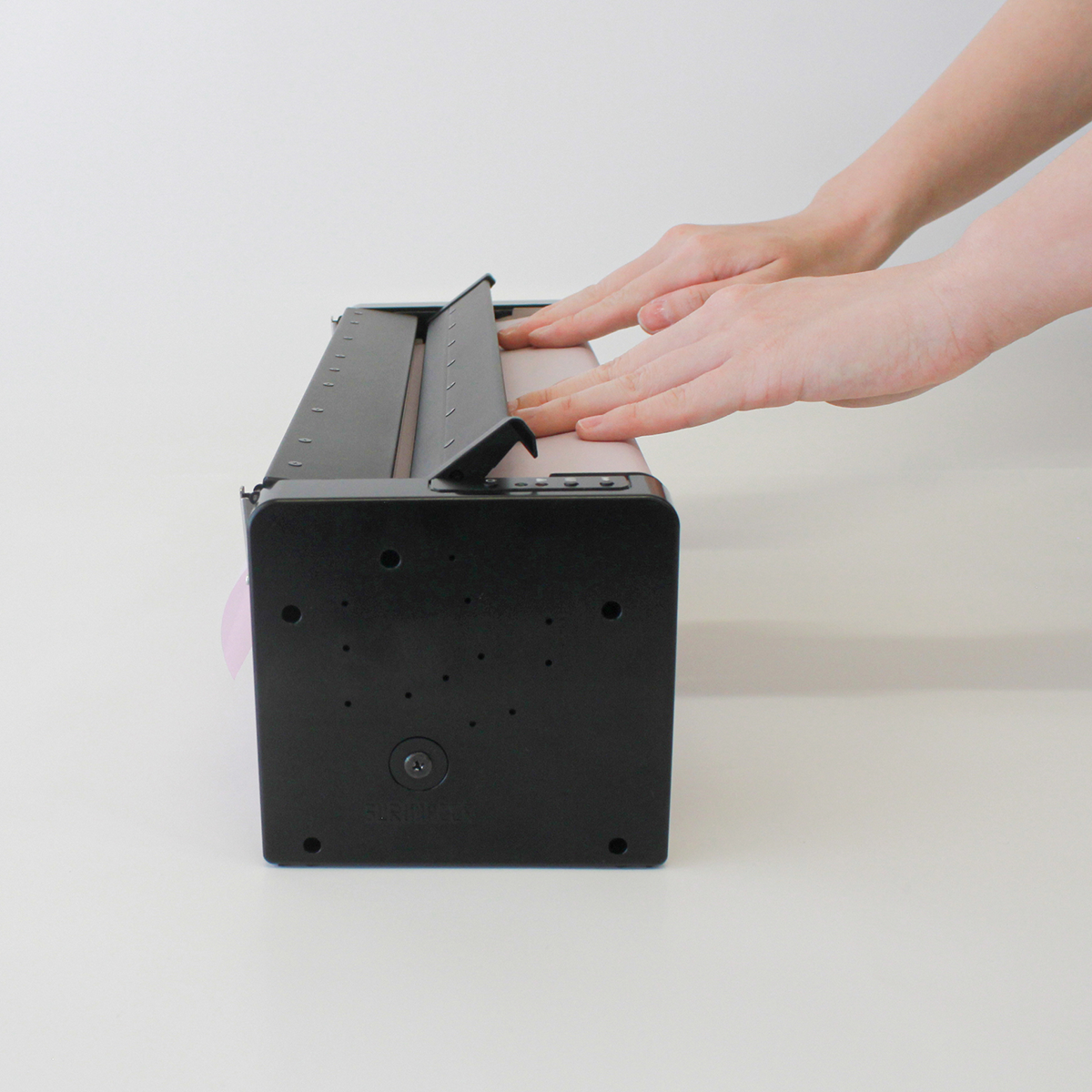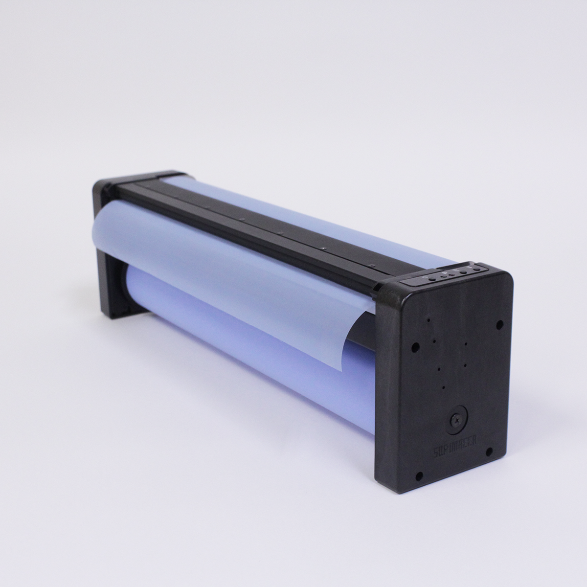 Plate making is possible in sizes compatible with SURIMACCA.¡¡SURIMACCA can be assembled using block-shaped parts, allowing it to be used in the size needed when needed.¡¡handerude-specific film is supplied in rolls and designed to be cut to the required length, eliminating waste.