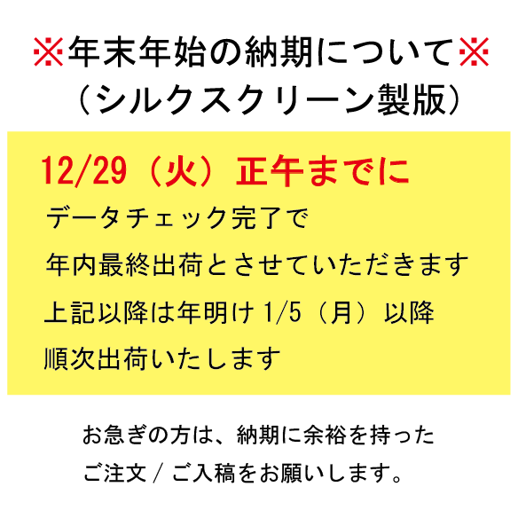 - 製版メッシュ数は基本的に「120メッシュ」です。セット内の選択したインクが「ゴールド/シルバー/カッパー」の場合は「70メッシュ(クリーナーあり)」でのお届けとなります。