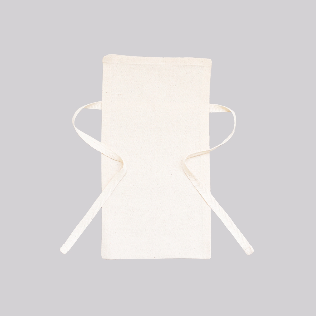 巾着紐をリボンとして結べるようにしたコットン素材のラッピング巾着です。 130mlのボトルが入るサイズ感で、リップなどの化粧品やハンドタオル等を入れて持ち運ぶ小物入れとしても使えるのが嬉しい! フラットで印刷しやすいのも◎