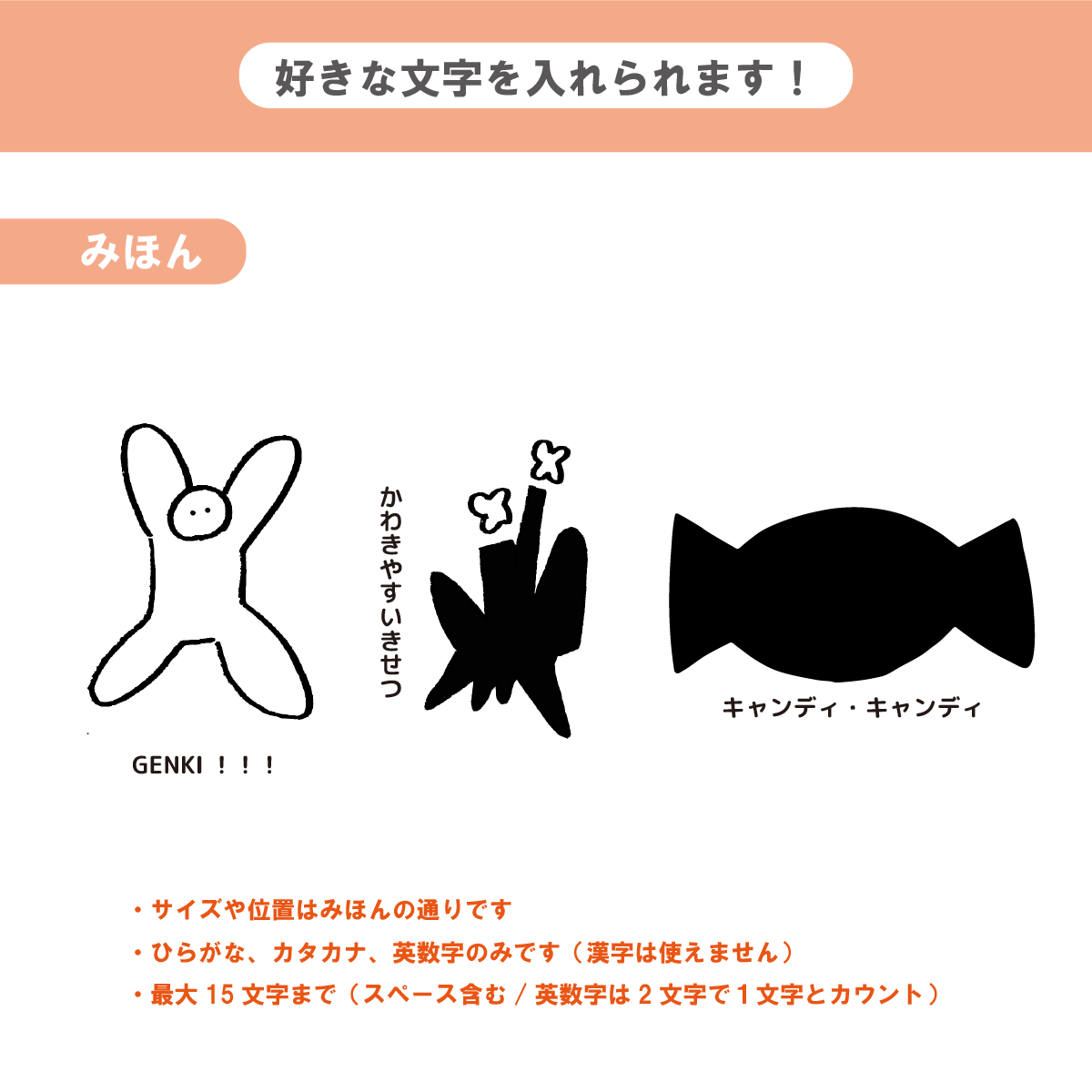 - 文字入れ希望の場合、フォントやサイズ、位置はお選び頂けません。