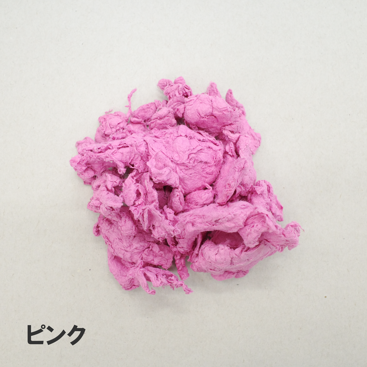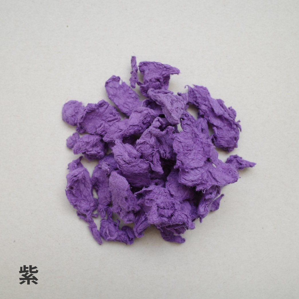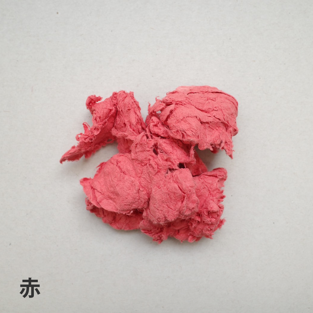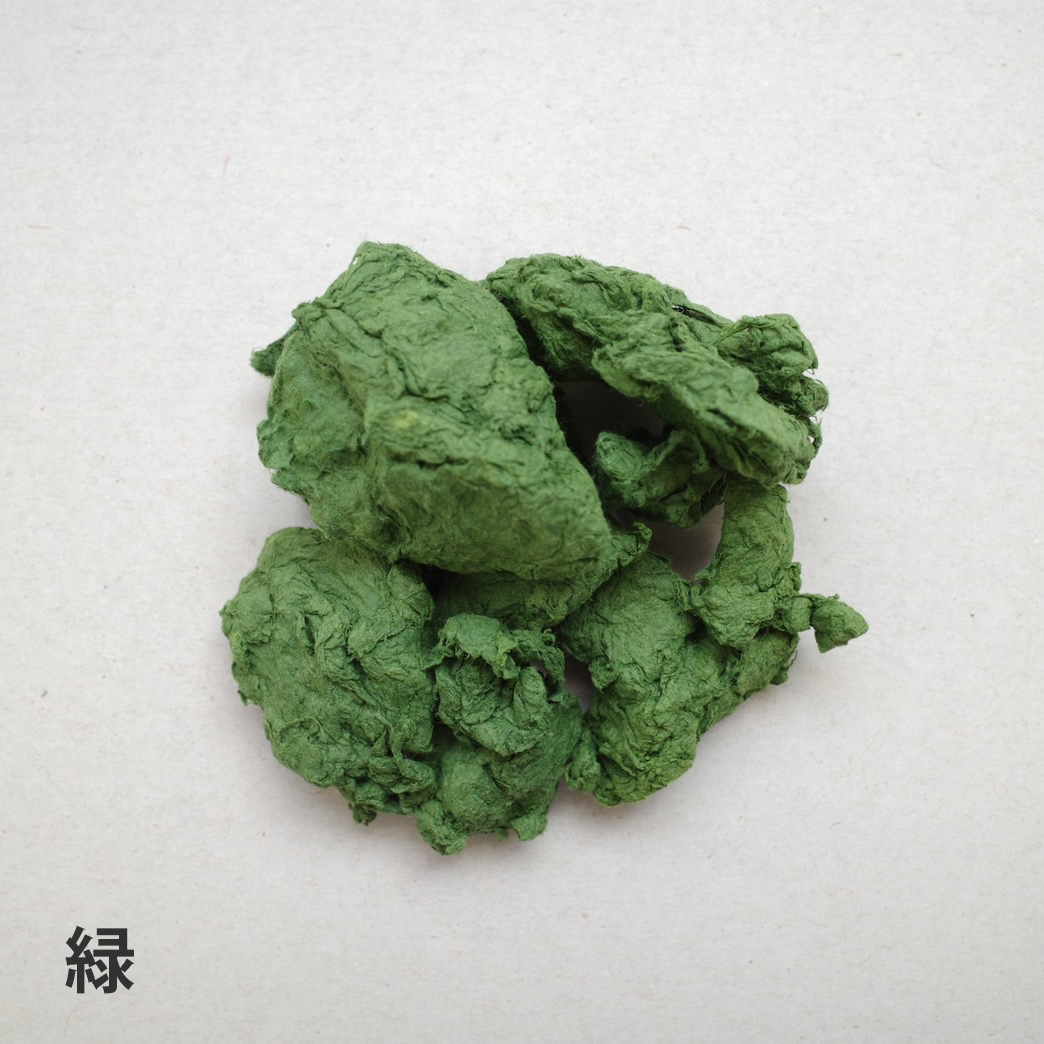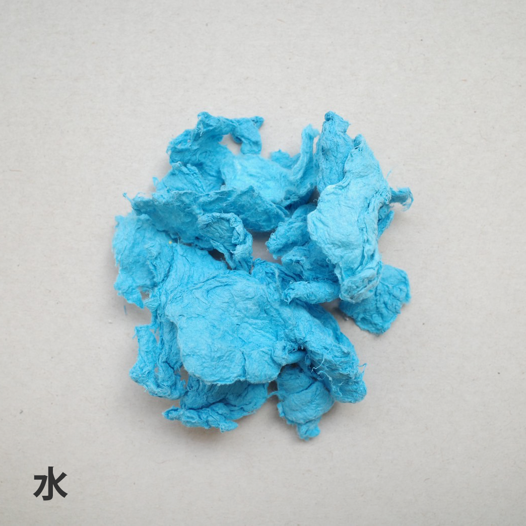 水に溶いて紙漉きの材料になります。漉く厚さにもよりますが、30gではがきサイズの紙が約8〜12枚作れます。