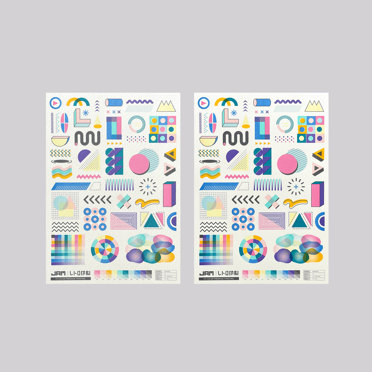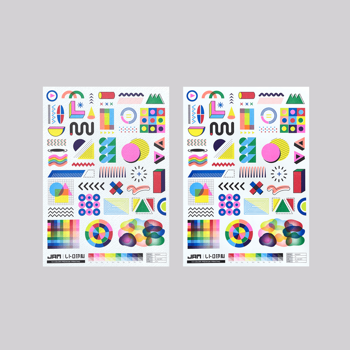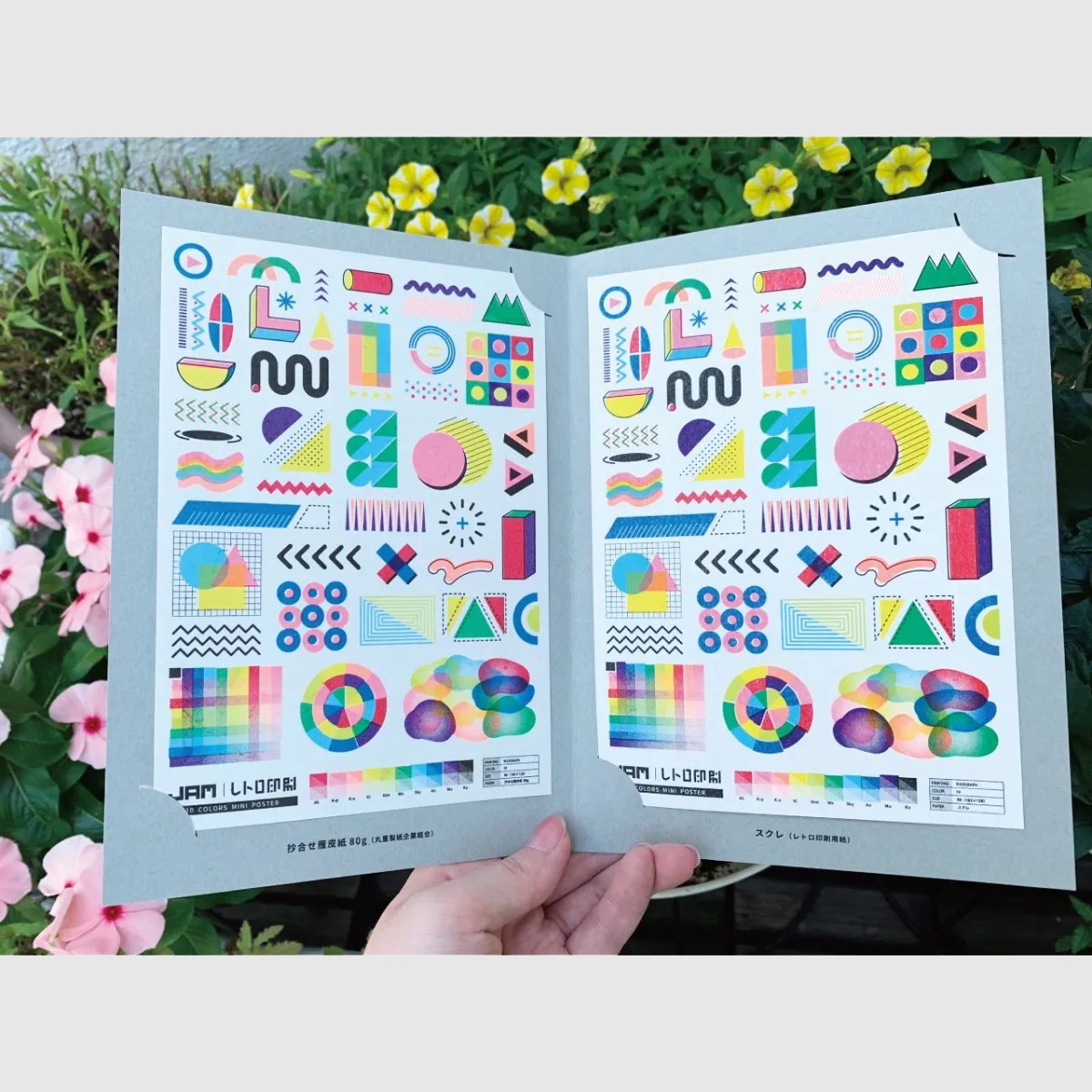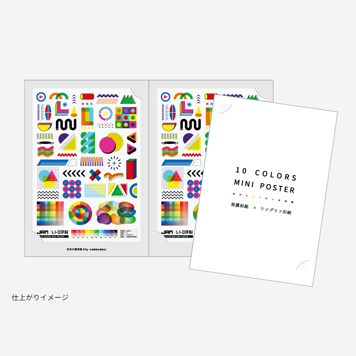 「レトロ印刷10色刷りA3ポスター」がミニサイズになりました。 レトロ印刷用紙に印刷した従来のミニサイズ版と美濃和紙に印刷した2枚入り。 紙による仕上がりの違いを比較してお楽しみください!