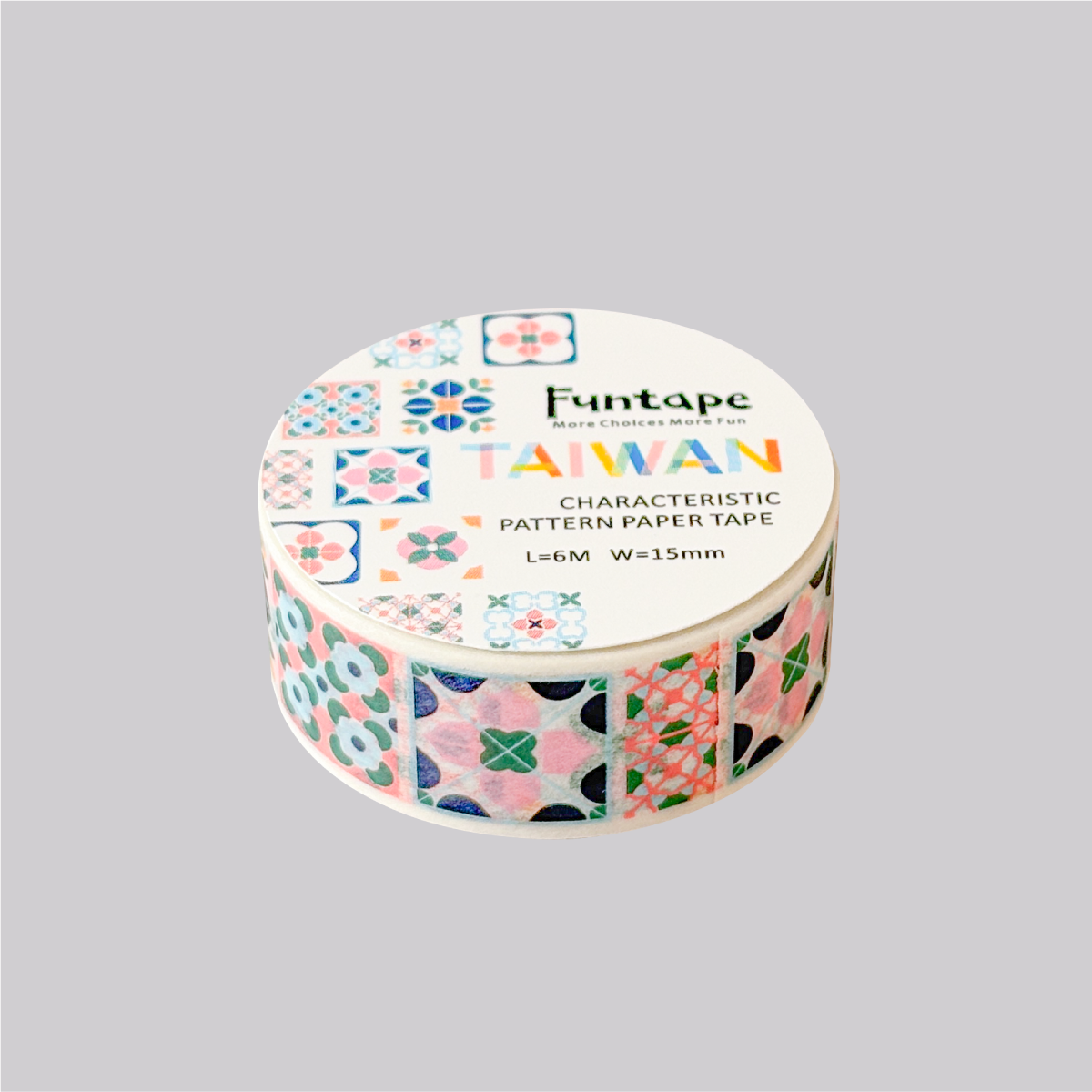 台湾の名物や特産物をモチーフにデザインされたマスキングテープです。「幾何学タイル」は、台湾の建物の装飾に使われたレトロなタイルがモチーフになっています。