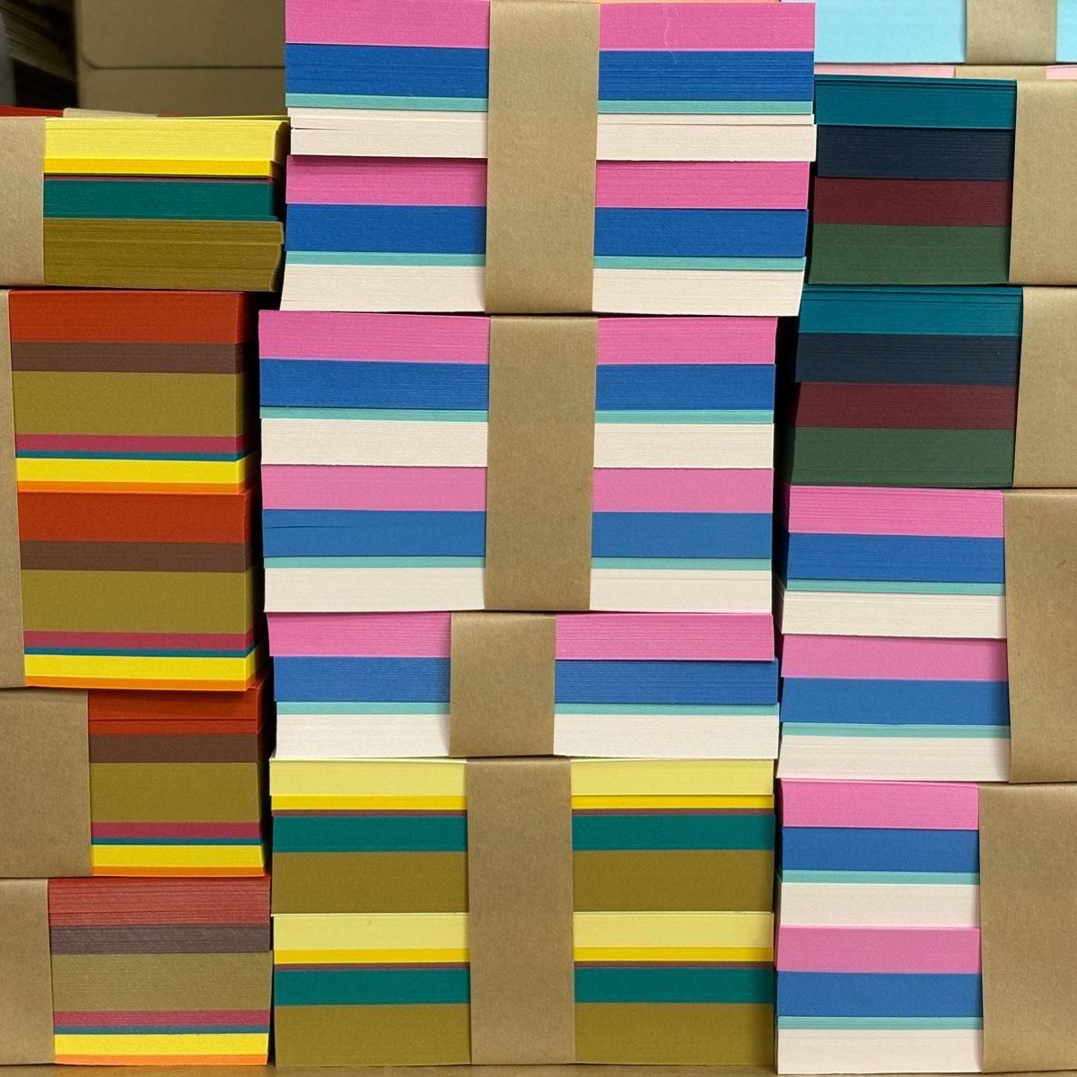 手ごろなサイズにカットした紙が1箱3〜4種類入っています。