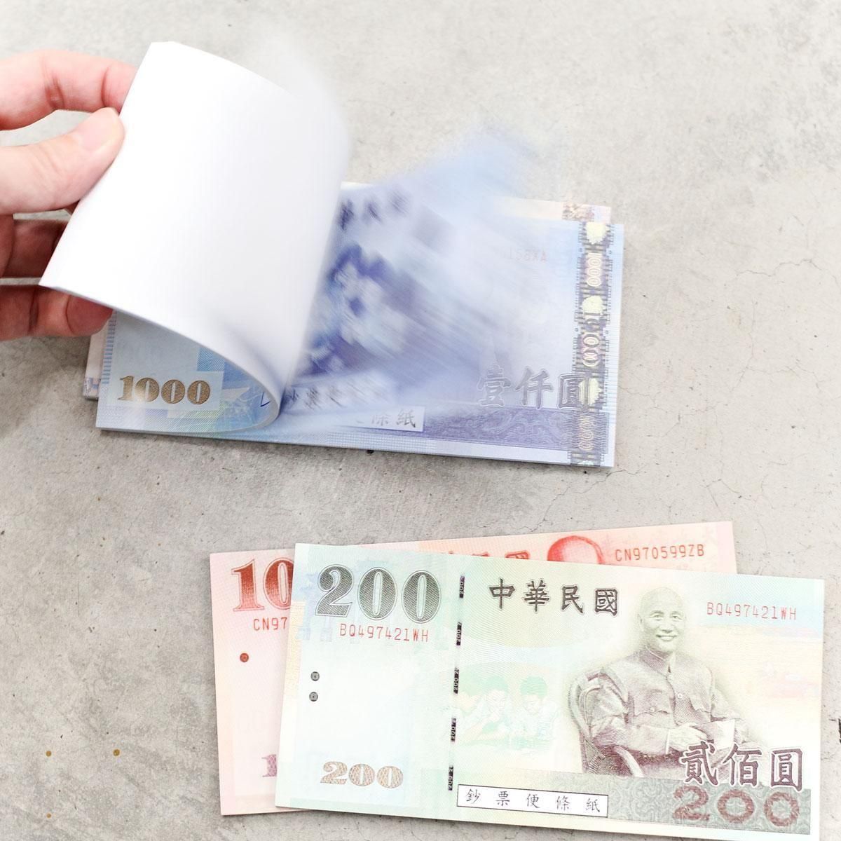 台湾で実際に使用されている紙幣を模したおもちゃのメモパッド!200元は日本の二千円札みたいにレアな存在らしいです。