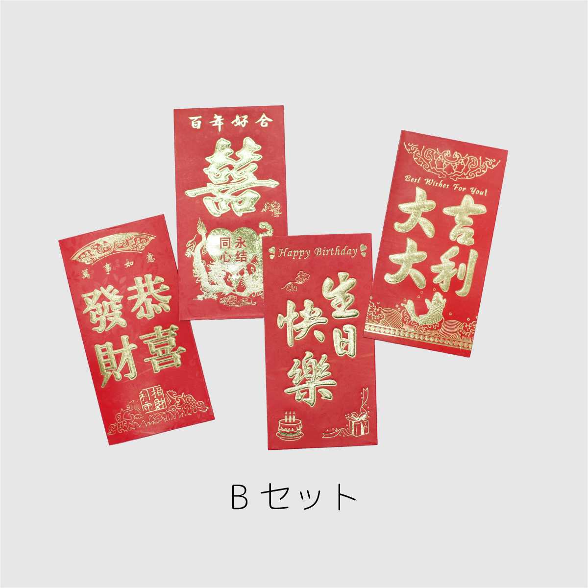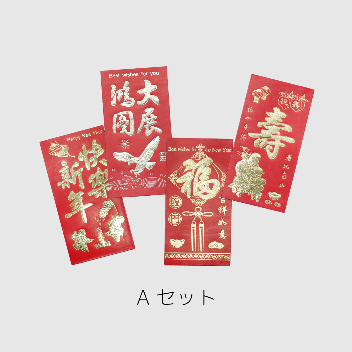 台湾でお年玉などお金をプレゼントする時に使われる赤い封筒「紅包」!4枚のアソートを2種類ご用意しました。