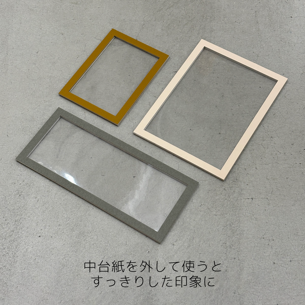 前後のフレームと中台紙で構成されており、中台紙を取り外すことで透明な余白を作るスッキリした印象で飾ることも可能です。前後のフレームにはマグネットが内蔵されており、工具や金具なしでフレーム同士がパチッと引っ付きます。