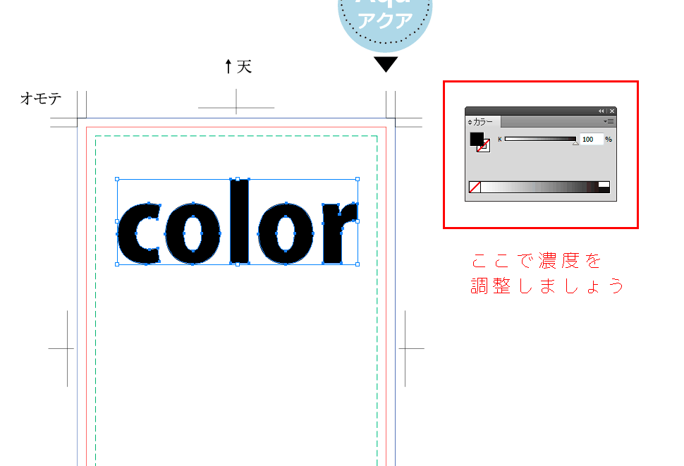 はっきりとした色味にしたい場合は、黒100%にしましょう。