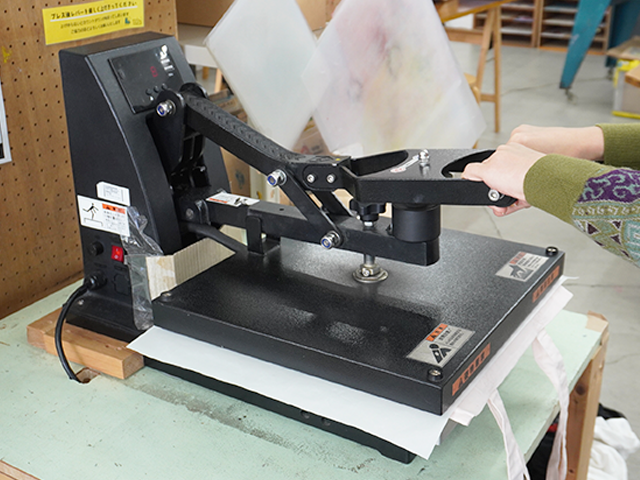 ホットバインダー(接着剤)と箔をしっかりくっつけるために、アイロンをあてます。