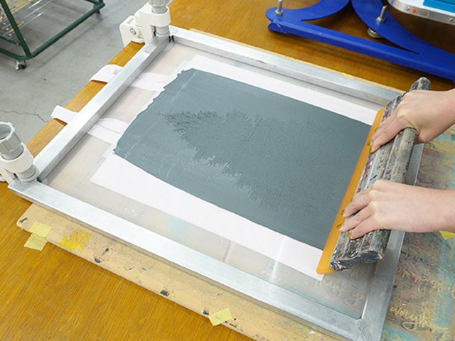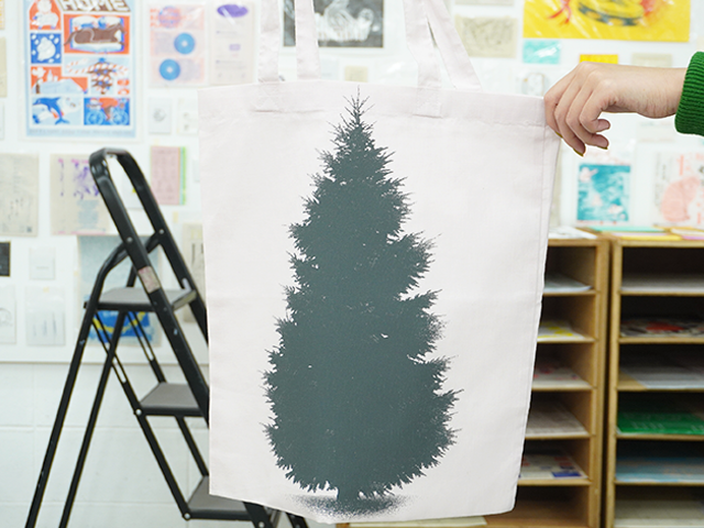 大判サイズの版に製版された“大きなもみの木”を、SURIMACCAインクの「すす」カラーでどどんと印刷!🌲