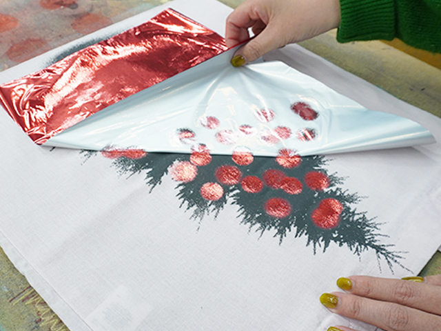 アイロンの熱がしっかり冷めたら、箔をそっと剥がします。