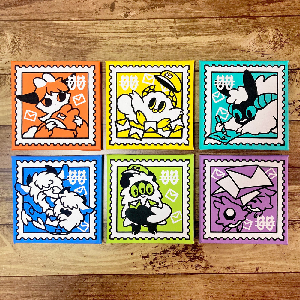 過去に描いたお気に入りの切手モチーフの作品をもっと広げたいと思い複数の候補の中から今回の展示に選びました。