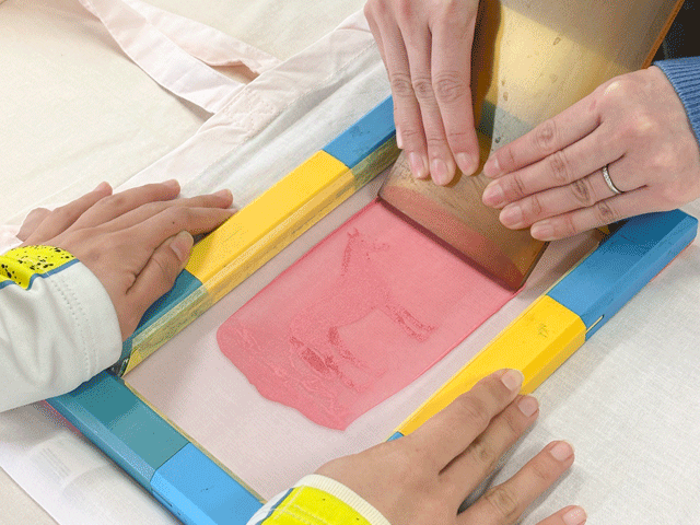今回、小型製版機handerudeを持って行っていたので、その場で描いたイラストをお好きなアイテムに印刷体験できるワークショップを開催しました~!お子さんが描いたイラストが製版されて、その場で印刷するなど大人から子供まで楽しめる内容でした。
