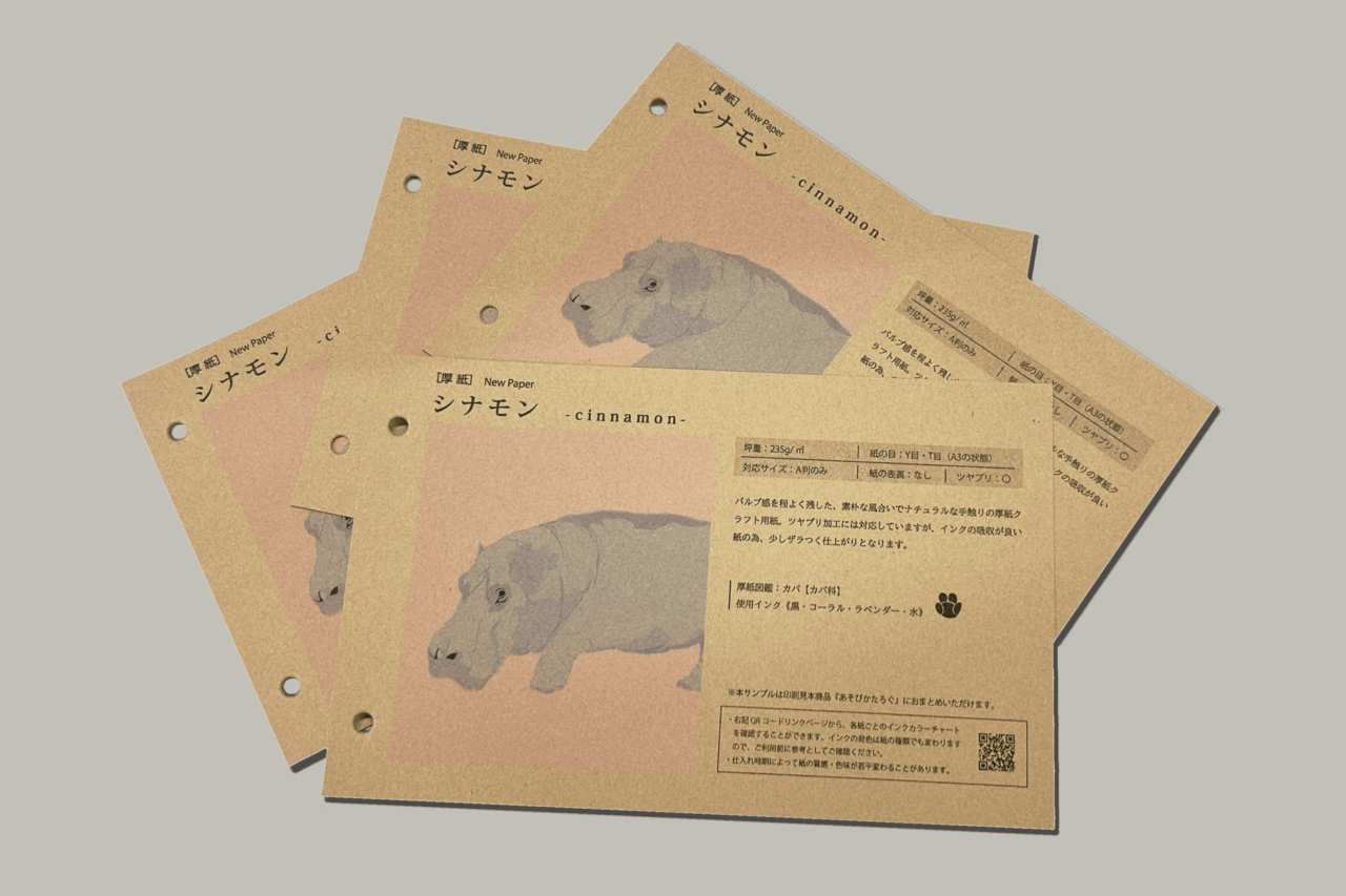 昨年に廃番となって取り扱いを終了しました、厚紙『モダンクラフト』に代わる完全JAMオリジナルとなる厚紙クラフト紙『シナモン』が発売となりました!以前のモダンクラフトに比べるとやや色味は濃くなりますがナチュラルな質感や色味は踏襲しています。そしてなにより今までのモダンクラフトでは紙質の都合で厚紙の中で唯一ツヤプリ加工非対応だったのですが、今回のシナモンはツヤプリにも対応しています!