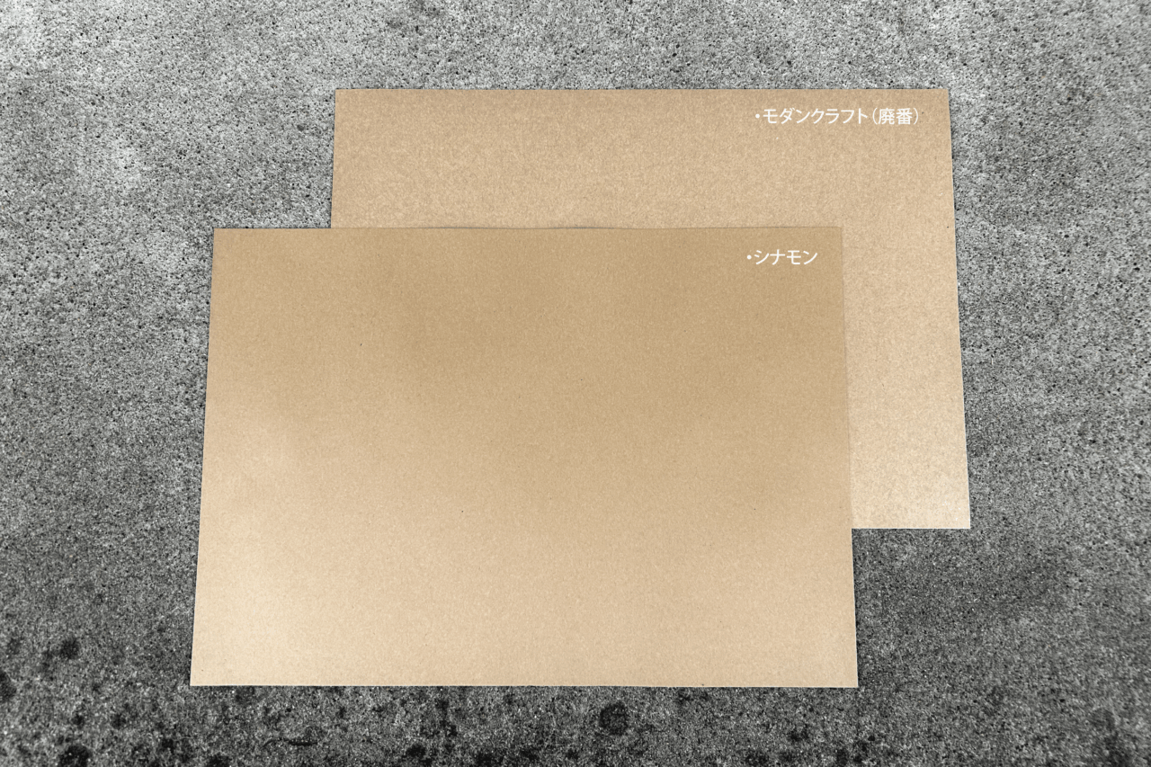旧モダンクラフトとの比較画像。モダンクラフトにあったパルプの雲模様みたいなものはシナモンにはなくフラットな質感です。