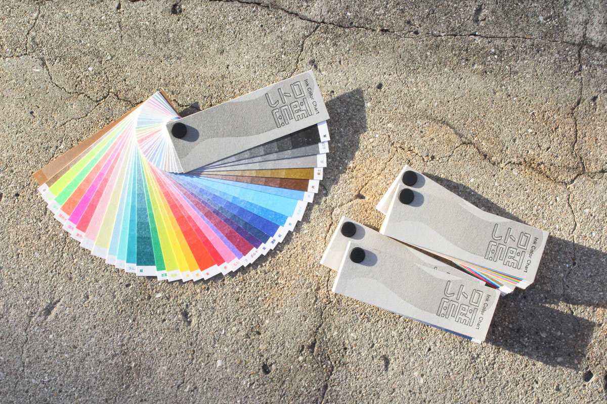 レトロ印刷のインク全34色を厚紙に印刷したカラーチャートです。くるくると開いて見たい色だけ見れるので、色の組み合わせの参考にとても重宝します!