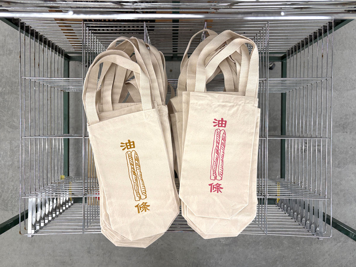 台湾の国民的パン、「油條」をモチーフにした縦長のトートを数量限定で作成しました。実は台湾の台北にも店舗があるJAM。台湾と、台湾JAMのことをもっと知ってもらうために生まれたお茶目なトートです。裏には印刷に使用したSURIMACCAの手書きロゴ入り!2色展開です。